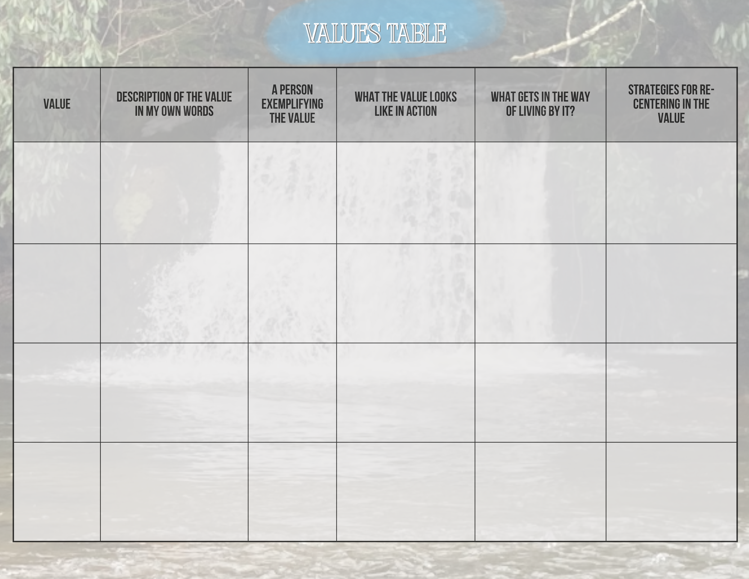 Give participants time to begin filling out the Core Values Table but understand that some of them will want to spend a lot more time on this than you will have available.